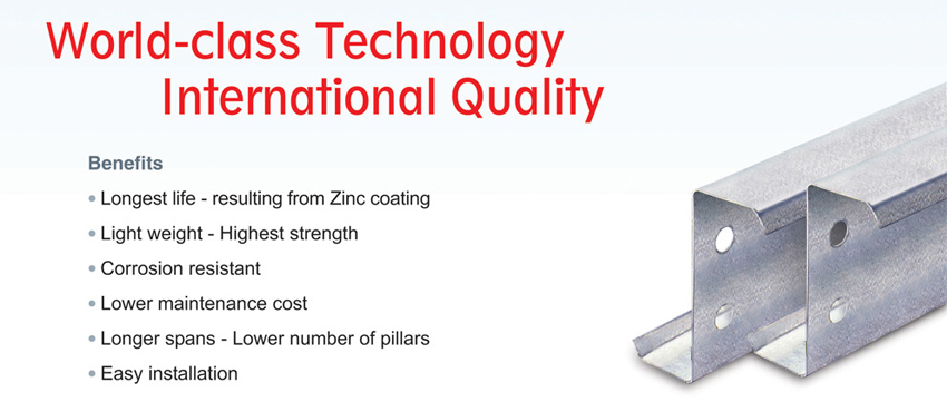 Z purlin is a preferred choice of runner purlin and girt in all modern steel building we are manufacturing Z purlin for the last 11 years and have the best infrastructure and experience to make the same. It is very light weight and high strength. We use high tensile steel as per client’s requirement. It is available in galvanized form as well. It does not require any site fabrication hence the galvanized coating is also not damaged unlike the tradition purlin made from square or rectangular hollow section or the structural angles channels and beams. It minimizes the wastage as well, as it comes in customized length up to 12 meter.